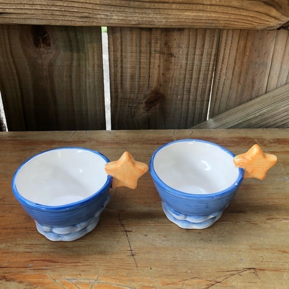 Set of 2 Blue Cups with Clouds at the Bottom & Yellow Stars on the Handles
