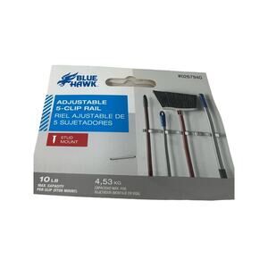 Set of 2 Blue Hawk Adjustable 5 Clip Wall Mounted Rail for Garden Cleaning Tools