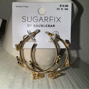 SugarFix BaubleBar Gold Crystal Wings Butterfly Hoop Embellished Earrings NWT