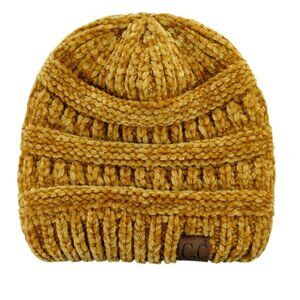1 mustard yellow (new with tags) - C.C Chenille Soft Warm Thick Knit Beanie Cap Hat-Mustard, NWT