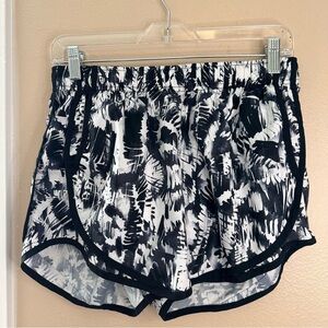 Stylish shorts set featuring a black and white abstract pattern and a logo print design. Excellent condition. No holes, stains, odors, etc. Price included both shorts.