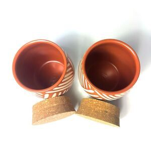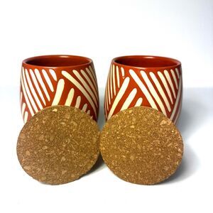 Set of 2 Canister with Cork Lid Orange and Tan NWT