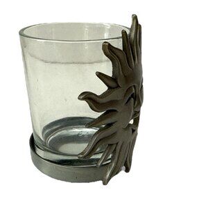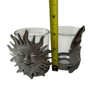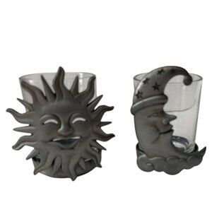 Set of 2 Celestial Sun & Moon Glass Candle Holders Metal Wrap Votive Tealight