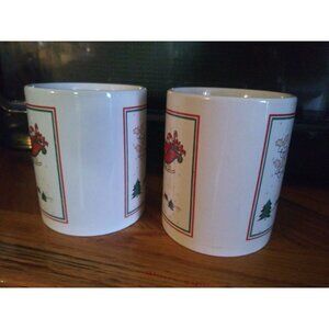 Set of 2 Christmas Mugs Santa Sleigh Reindeer Ceramic excellent condition