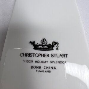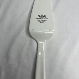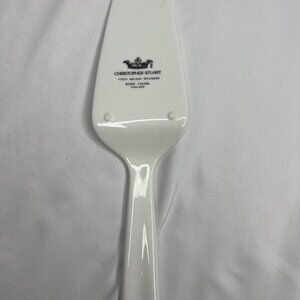 Serve your holiday treats in style with this set of 2 Christopher Stuart cake servers! Crafted from high-quality bone china, these servers feature a beautiful white color, glossy finish, and a festive holly handle pattern. Measuring 10 1/2 inches in length, they are perfect for serving cake or pie slices at your Christmas or holiday gatherings. This set includes 2 servers and is ideal for those who want to add a touch of elegance to their dining experience. These servers are functional and decorative, making them a great addition to your kitchen, dining, or bar collection. Get ready to impress your guests with these elegant cake servers!
