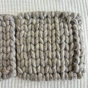 Set of 2 Chunky Knit Wool Trivets Hot Pads Gray Handcrafted Rustic Farmhouse