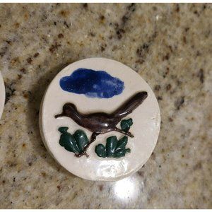 Set of 2 Clay Hand Painted Pottery Southwestern Cactus Road Runner Bird Magnets