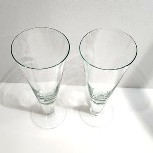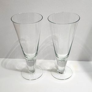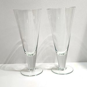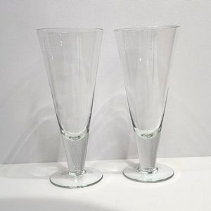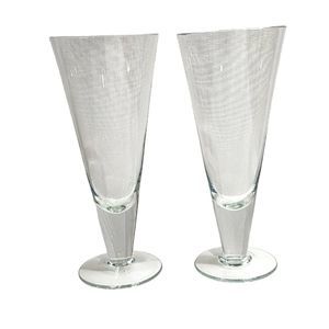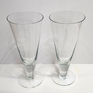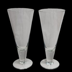 Set of 2 Clear Crystal Footed Pilsner Beer Glass Stemware Barware