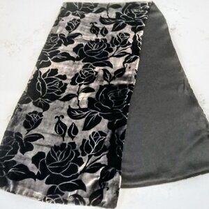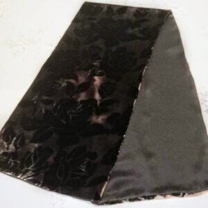 Set of 2 floral print velvet oblong scarves from Elaine Gold Collection XIIX - one in deep brown and one in charcoal grey.