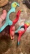 Set of 2 vibrant parrot-shaped towel holders. Features bright red and blue colors. Perfect for adding a playful touch to your bathroom decor.