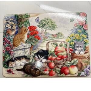 Set of 2 Cork Backed Playful Kitten Garden Table Mats Creative Tops