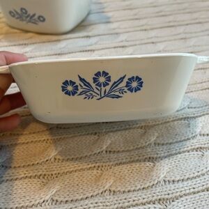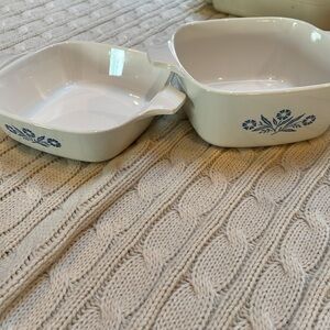Set of 2 Corning Ware Cornflower Blue Small Casserole Dishes P-43-B & P-41. No lids. Good used condition. See pics for dimensions.