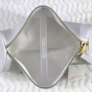 White “Pencil It In” Pouch – Cylindrical shape with gold zipper