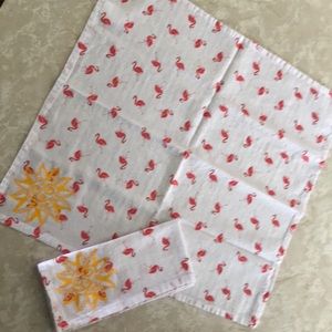 Set of 2 100% Cotton Napkins Flamingo Print Yellow Sun Detail 19.5 inches x 20.5 inches