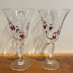Set of (2) Crate & Barrel 8oz Blown Glass Fused Santa Wine Goblets Glasses