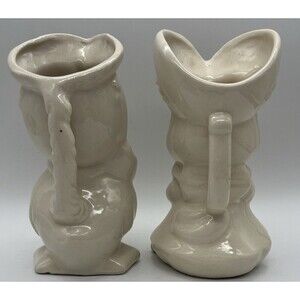 Add a touch of vintage charm to your table setting with this set of 2 creamers milk pitchers. Made of high-quality porcelain, one of the pitchers features a cute duck design while the other features an adorable pig design. Both pitchers stand at 7.5 inches high and are perfect for serving cream or milk with your coffee or tea. The beige color of the pitchers makes them a great addition to any collection or table setting. Whether you're hosting a tea party or just enjoying a cup of coffee, these pitchers are sure to impress your guests.