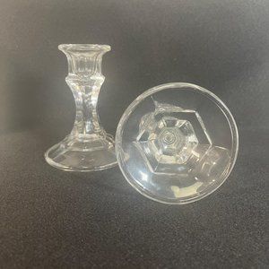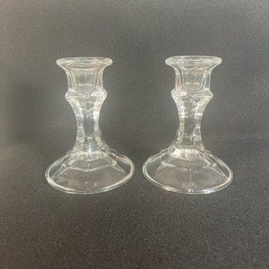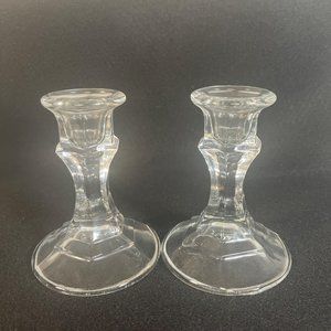 Set of 2 Crissa Clear Glass Candlesticks Taper Holders 4 in