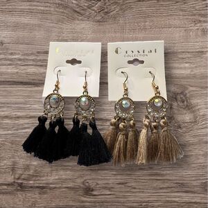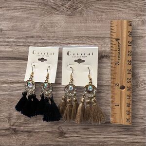 Set of 2 Crystal Collection Tassel Earrings Rhinestone Dangle Drop Boho Chic