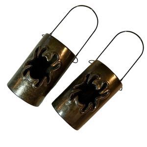 Set of 2 Dark Iridescent Ceramic Spider Cutout Shaped Hanging Candle Lanterns