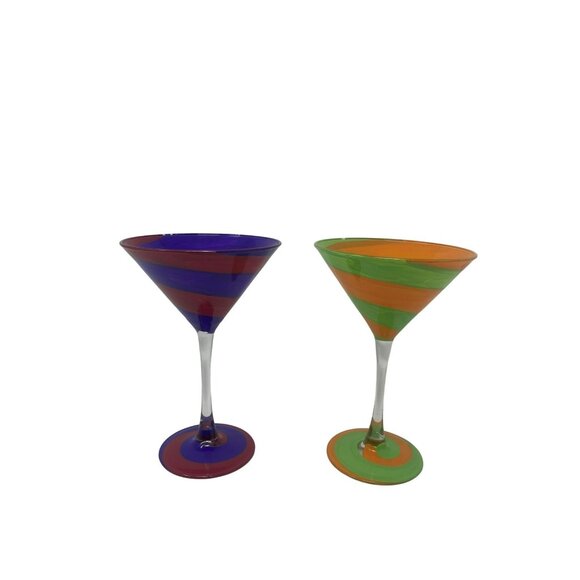 Set of 2 Detroit Glass Company Hand-Painted Swirl Martini Glasses Orange/Green a