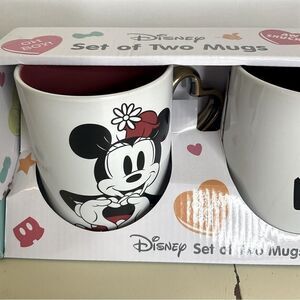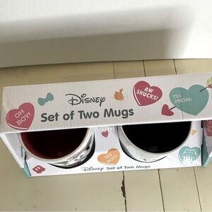 Set of 2 Disney mugs with Mickey mouse on one and Love on the other. They both have gold heart handles. They are new in the box.