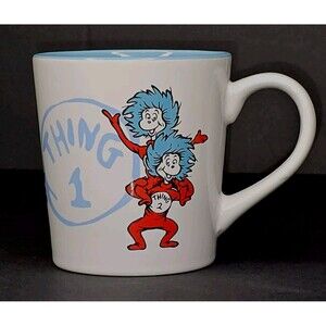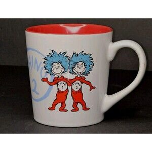 This set of 2 coffee mugs features the iconic characters Thing 1 and Thing 2 from the beloved Dr. Seuss franchise. The vibrant red color adds a pop of fun to your morning coffee or tea. These mugs are perfect for collectors and fans of Dr. Seuss, as well as anyone who enjoys a good cup of caffeine. Whether you're adding to your mug collection or simply looking for a cheerful way to start your day, these Dr. Seuss mugs are sure to please.