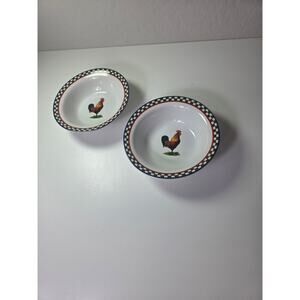 Set of 2- ELLA'S ROOSTER by International Red Checkered Border 6.5" Bowls