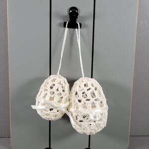 Set of 2 Eggs White Handmade Crochet Hanging Lace Ornaments with Ribbon Bows