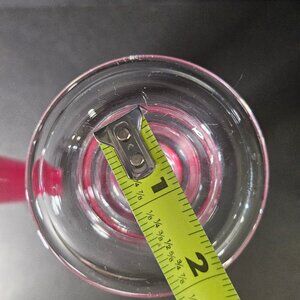Rare item: This item is hard to come by. Crate and Barrel pair of Ruby red and clear tall, elegant candlestick holders. Wow your tablescape, especially holiday tables with these two beauties. The top cup and bottom bass is clear glass. The entire center column is Ruby Red Glass. Very classy, thick glass and pretty form. Perfect for taper candles. 2.75. inches deep. 9.75. inches high. Preowned excellent condition. Non smoking pet free home. @ ER NW Boxed