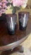 Set of two elegant purple glass tumblers with intricate etched designs. Perfect for adding a touch of sophistication to any table setting.