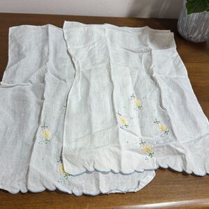 Set of 2 Embroidered Linen Luncheon Dinner Napkins Yellow Flowers Towels