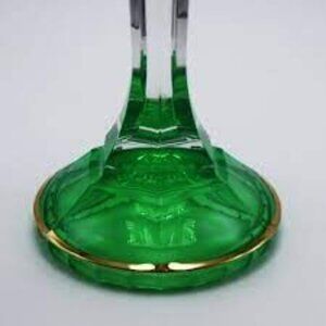 Set of 2 Empoli Emerald and Clear Glass Candle Holders Circa 1950