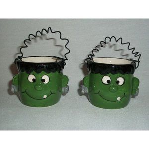 Set of 2 Frankenstein Votive Tea Light Holder Green Table Halloween Decor Party