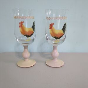 Set of 2 Glassware Goblet Morning Rooster by Oneida, Vintage Discontinued