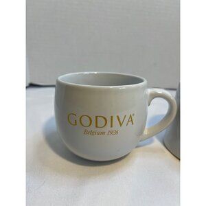 Set of 2 Godiva Belgium 1926 White and Gold Coffee Mugs