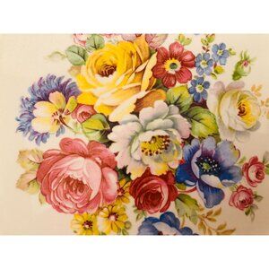 The **VTG Salem Century dinner plates** feature a classic design with **23-karat gold accents** and a **white center** adorned with a **colorful floral bouquet**. These plates are crafted with a delicate and elegant aesthetic, showcasing rich details in the floral arrangement. Each plate measures approximately **10 inches in diameter**, making it suitable for serving main courses or larger meals. The use of **23-karat gold accents** adds a touch of luxury and sophistication, elevating the overall appearance of the dinnerware. Vintage Salem Century dinner plates are known for their fine craftsmanship and are highly valued by collectors for both their beauty and quality.