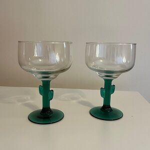 Set of 2 Green Cactus Stem Glass Margarita Glasses