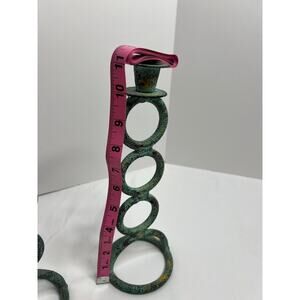 Set of 2 Green Tone Cast Iron Candle Holders, Unique Style!
