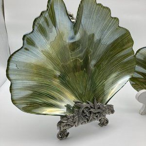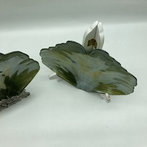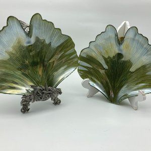 Set of 2 Green Vietri Iridescent Abstract Bowls/Candy Dish Made in Turkey