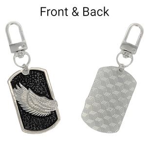 Set of 2 - Guardian Angel Wing Dog Tag Keychain, Silver & Black