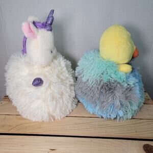 Set of 2 HUG Fuzzy Plushes: Fluffy Unicorn & Fluffy Duck - NWT