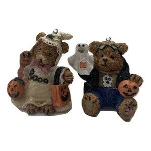 Set of 2 Halloween Bears Figurines Trick Or Treat Ghost Pumpkin Couple Decor