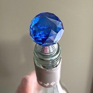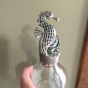 One stopper features a silver sea horse and the other a beautiful bright blue faux crystal!