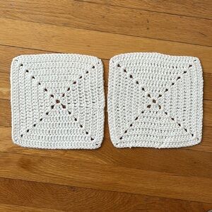 Neutral crocheted potholders in a beautiful design; great for a vintage, country or natural style kitchen. Excellent condition. Bundle for additional savings!