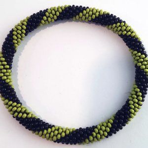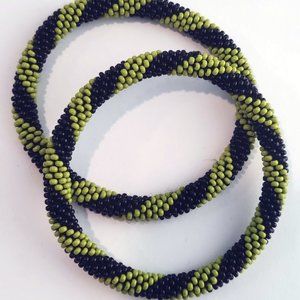 Set of 2 Black and Green Colors Patterns Roll Over Handmade Glass Beaded Crochet Glass Nepal Bracelets. Seed Beads Bracelets New year Gift Nepali Style Custom-Made Personalized Beaded Crochet Bracelets Bangle | Glass seed bead crochet bracelet