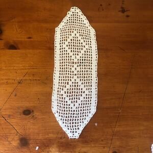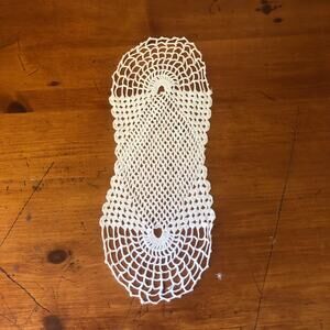 Set of 2 Handmade White Crochet Doily Cotton Oval Diamond Pattern Design Vintage