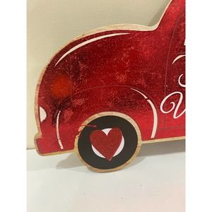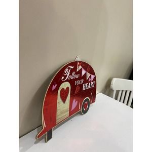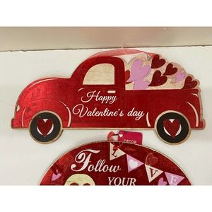 Set of 2 Happy Valentine’s Day Red Truck & Camper Wood Hanging Wall Sign Decor