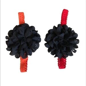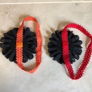One red and one orange headband, both with black flowers. Perfect for babies and young girls.