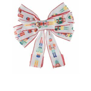 Set of 2 Holiday Style Nutcracker Large Wired Christmas Tree Topper Bow New