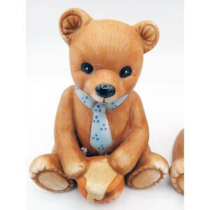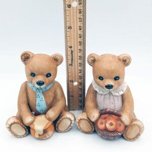 Set of 2 Homco Bears Mama with Apples Papa with a Honey Pot 4 inches Vintage 80s